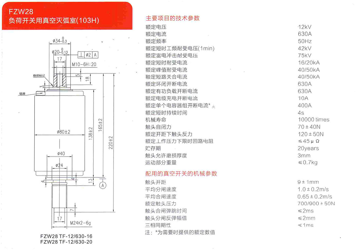 FZW28負荷開關用真空滅弧室(103H)